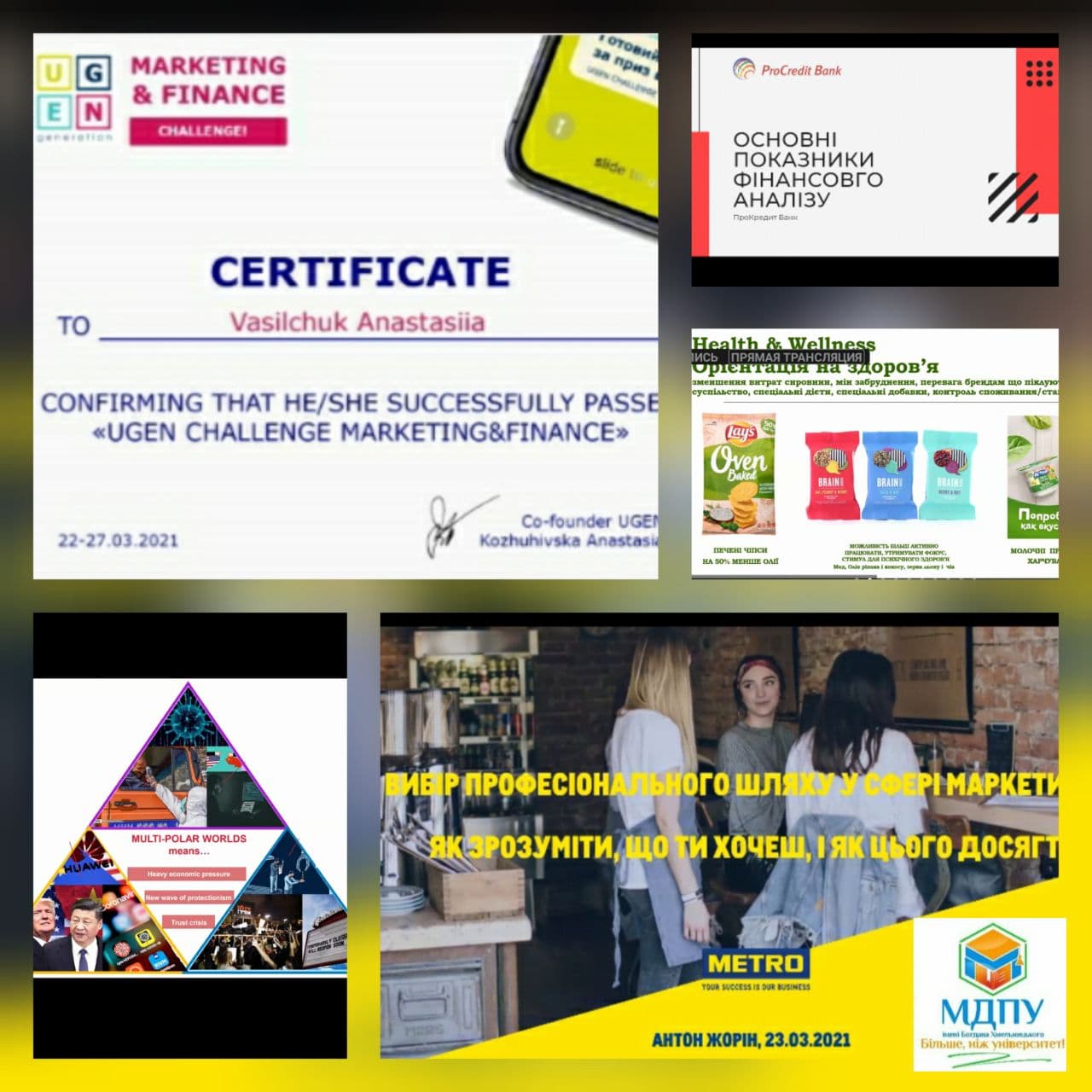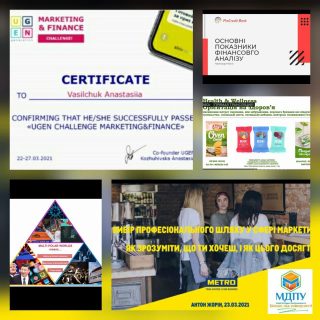 Минулого тижня студентка ІІІ курсу кафедри управління та адміністрування факультету інформатики, математики та економіки Васильчук Анастасія пройшла програму онлайн-курсів з маркетингу та фінансів (UGEN Challenge Marketing & Finance).