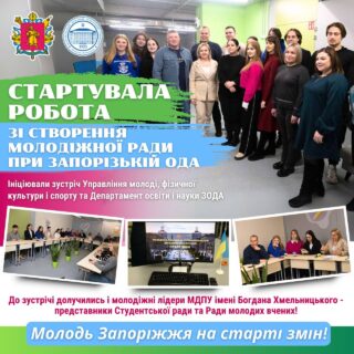 🏛️💫 У Запорізькій області розпочалася робота над створенням Молодіжної ради при ЗОДА. Перша організаційна зустріч зібрала студентських активістів, молодих науковців, підприємців, представників трудової молоді та молодіжних рад територіальних громад. Ініціаторами події стали Управління молоді, фізичної культури і спорту та Департамент освіти і науки ЗОДА.
