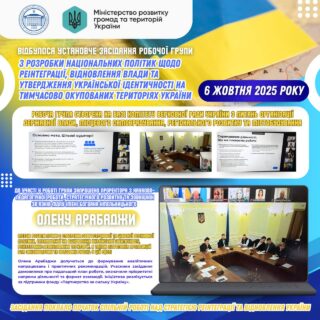 🗓️👥 6 жовтня відбулося установче засідання Робочої групи з розробки національних політик щодо реінтеграції, відновлення влади та утвердження української ідентичності на тимчасово окупованих територіях України.