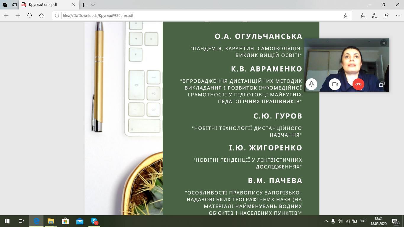 18 травня на філологічному факультеті відбувся круглий стіл «Сучасна філологія: наукові та освітні вектори (проблеми комерціалізації та проектної діяльності в умовах карантину)».