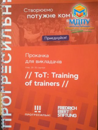 Спектр сучасних освітніх технологій упродовж навчального семестру на освітніх програмах «Середня освіта. Мова і література (англійська, німецька), перша – англійська» та «Філологія. Германські мови та літератури (переклад включно), перша – англійська» буде суттєво урізноманітнено завдяки участі викладачів у заходах, що сприяють розвитку професійної майстерності. Так, з форматом проведення «Живої бібліотеки» та багатьох інших дієвих технологій декан філологічного факультету, доцент кафедри методики викладання германських мов Тетяна Коноваленко познайомилась на тренінгах для викладачів (28-30 серпня 2020 р.) від громадської організації «Прогресильні».