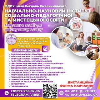 Обирай сучасну та затребувану на ринку праці спеціальність та освітню програму саме у Навчально-науковому інституті соціально-педагогічної та мистецької освіти!