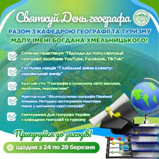 СВЯТКУЙ ДЕНЬ ГЕОГРАФА РАЗОМ З КАФЕДРОЮ ГЕОГРАФІЇ ТА ТУРИЗМУ МДПУ ІМЕНІ БОГДАНА ХМЕЛЬНИЦЬКОГО!