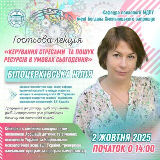 📌🙋🏻♀️Тема гостьової лекції: «Керування стресами та пошук ресурсів в умовах сьогодення»