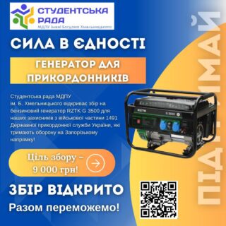 ‼️🤝🏻 Студентська рада Мелітопольського державного педагогічного університету імені Богдана Хмельницького відкриває збір на бензиновий генератор RZTK G 3500 для наших захисників з військової частини 1491 Державної прикордонної служби України, які тримають оборону на Запорізькому напрямку!
