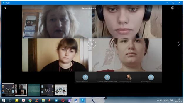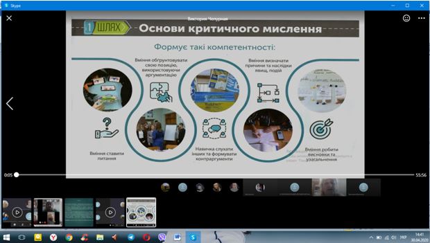 30 квітня 2020 р. студенти 116, 126 і 127 груп IV курсу хіміко-біологічного факультету на практичному занятті он-лайн в Skype дисципліни «Методика навчання природознавства, біології та екології» знайомилися з новими освітніми технологіями навчання на уроках біології, а саме з технологією критичного мислення.