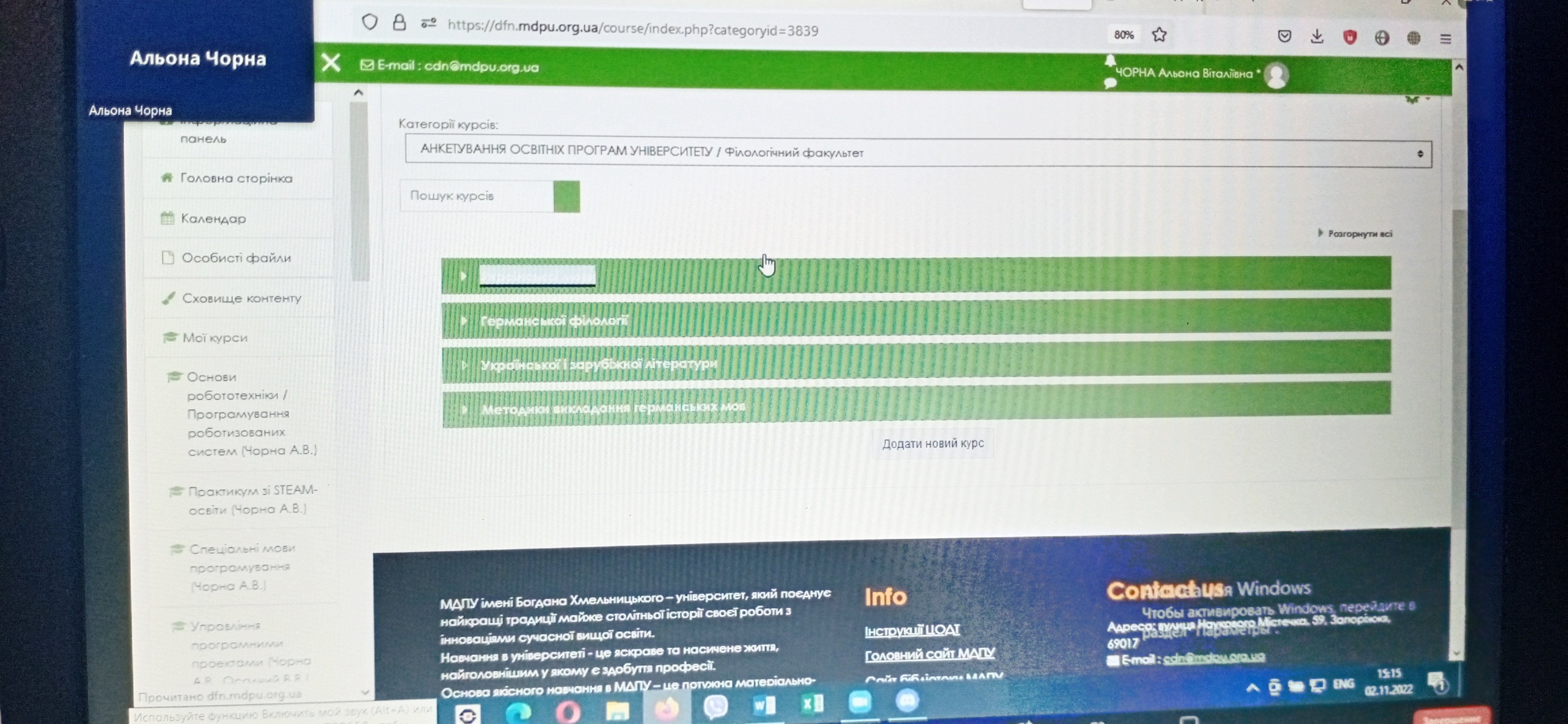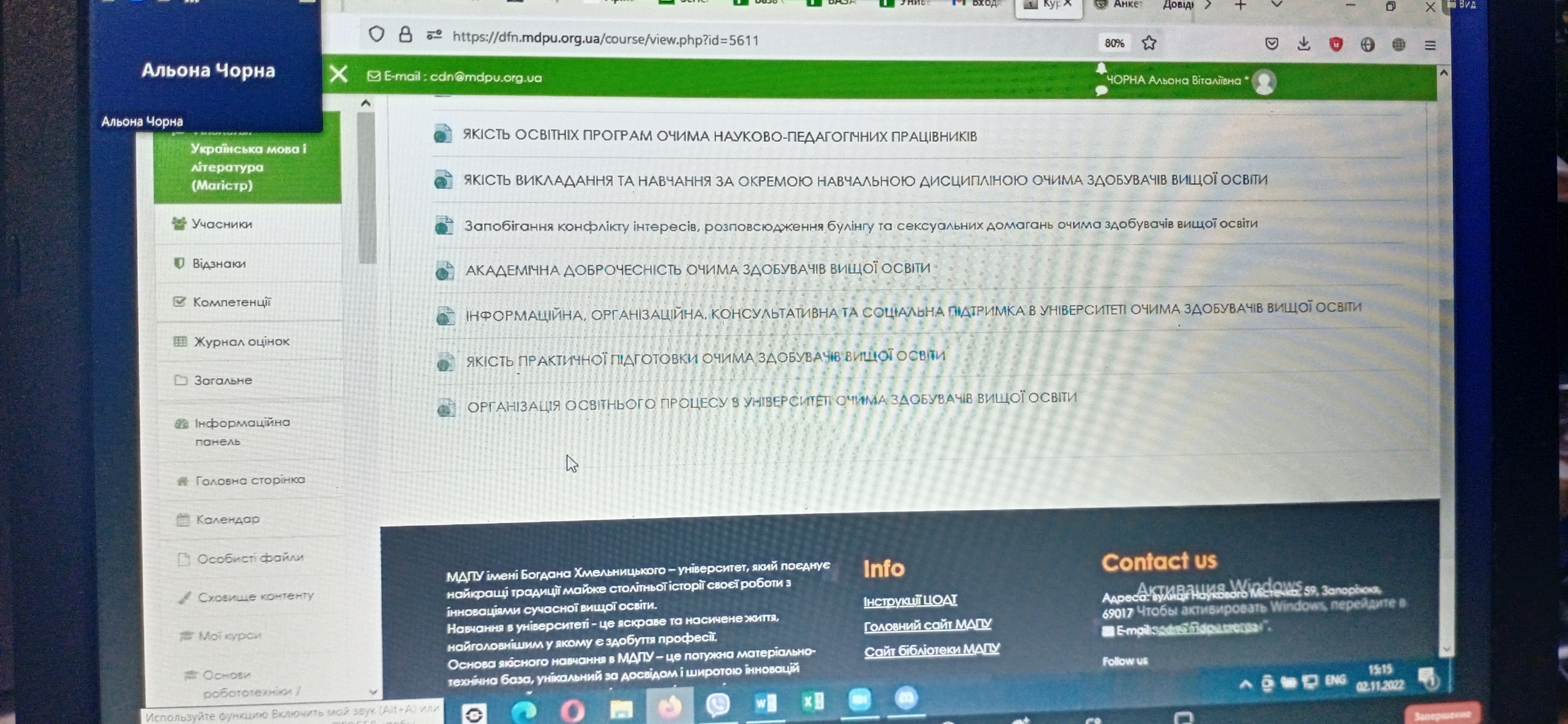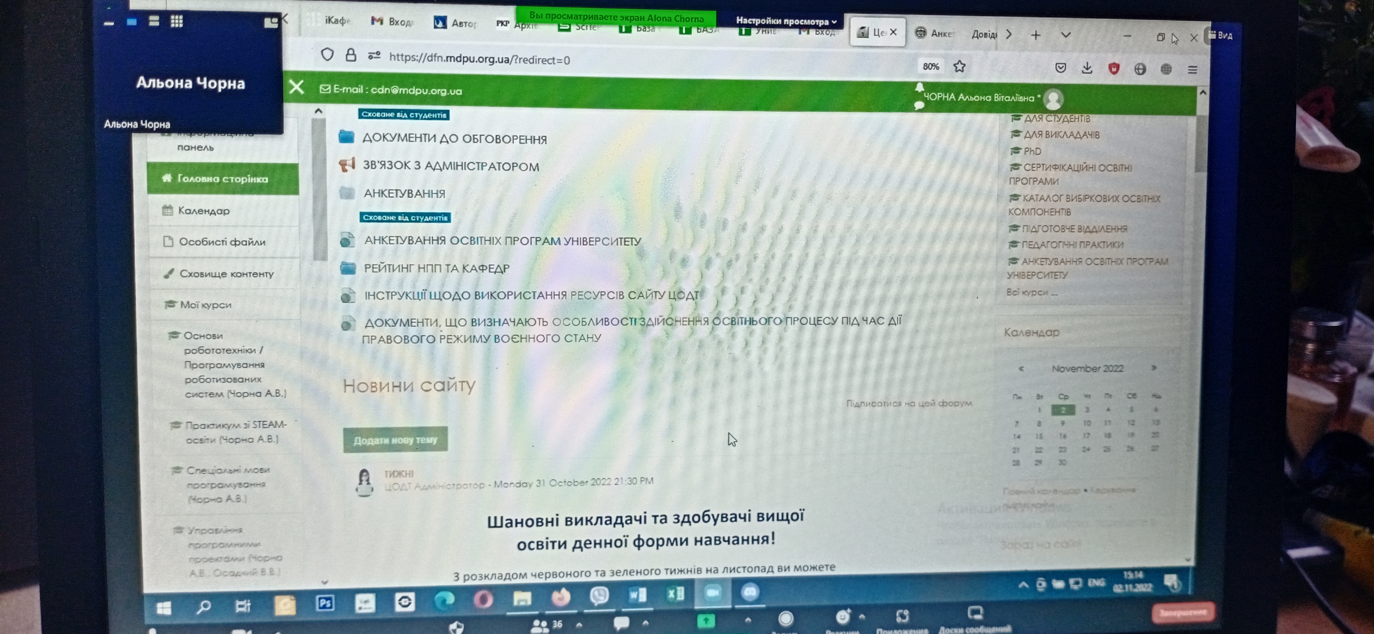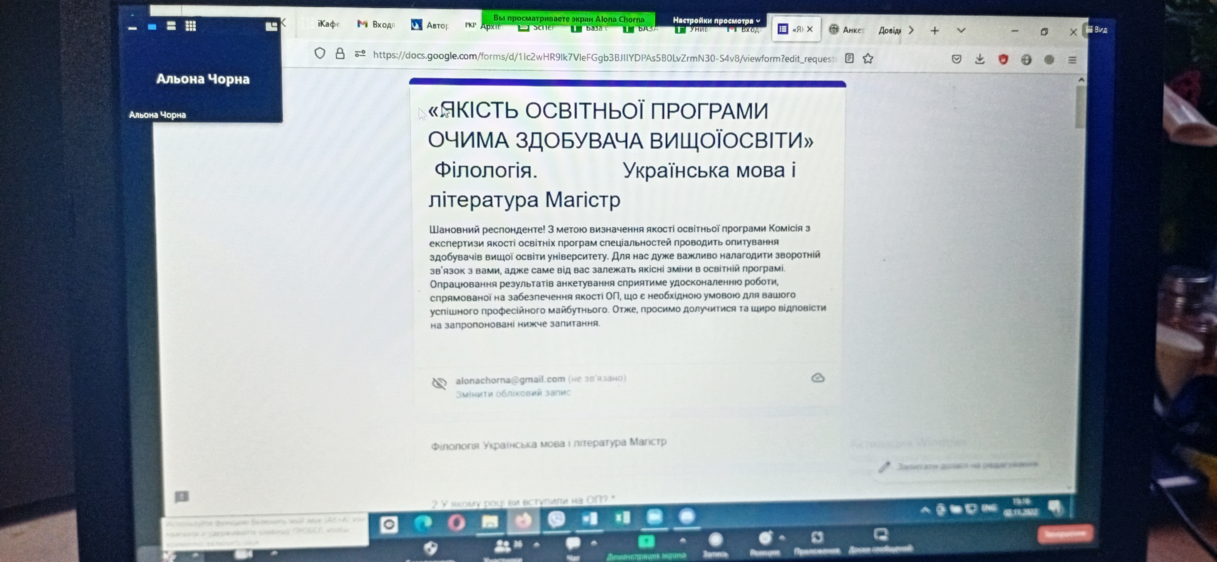 Керівник Центру освітніх дистанційних технологій кандидат педагогічних наук, доцент Чорна Альона Віталіївна показала гарантам на офіційному сайті університету ДЕ? знайти, ЯК? зайти анкету саме тієї освітньої програми.