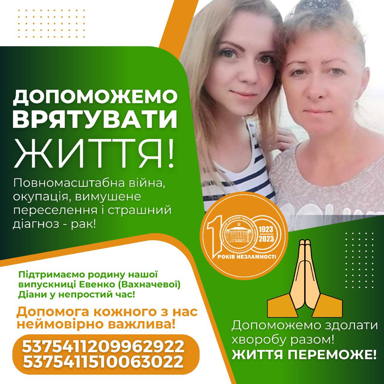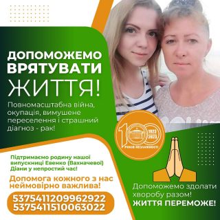 Її родина стикнулась з неймовірним викликом, матері Діани поставили страшний діагноз – спочатку рак молочної залози, а зараз на фоні цього прогресує рак хребта. Усі члени родини Діани через повномасштабну війну, окупацію міста Енергодар стали вимушеними переселенцями. До російського вторгнення мати Діани лікувалися в онкоклініці в Запоріжжі. Наразі вона перебуває у Кропівницькому, в клініці Святого Луки. Ця медична установа погодилися провести операцію та усі інші життєво важливі процедури.