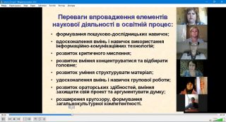 На одному з підсумкових занять були обговорені можливості впровадження елементів наукової діяльності в освітній процес у середній, старшій та вищій школах. Визначено вимоги до сучасного педагога не лише як вчителя, вихователя, фасилітатора, а й як науковця.