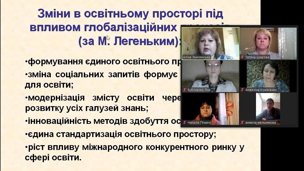 На одному з підсумкових занять були обговорені можливості впровадження елементів наукової діяльності в освітній процес у середній, старшій та вищій школах. Визначено вимоги до сучасного педагога не лише як вчителя, вихователя, фасилітатора, а й як науковця.