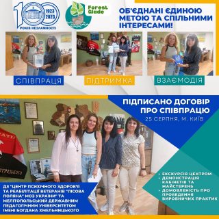 25 серпня 2023 р. – підписано Договір про співпрацю між ДЗ «Центр психічного здоров’я та реабілітації ветеранів «Лiсова Поляна» МОЗ України» та МДПУ імені Богдана Хмельницького. У договорі передбачено проведення виробничих практик для здобувачів спеціальності 053 Психологія другого (магістерського) рівня вищої освіти ОП Клінічна і реабілітаційна психологія, ОП Практична психологія.