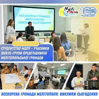 Кейс 4. 12 вересня 2023 р. у м. Києві відбувся інтерактивний круглий стіл «Такі різні й такі рідні, бо ми – українські мелітопольці, об’єднані навколо майбутнього». Викладачі МДПУ імені Богдана Хмельницького – професор кафедри соціології та філософії Наталя Глебова та доцент кафедри соціології та філософії Людмила Афанасьєва, які були модераторами круглого столу, презентували результати соціологічних досліджень «Повоєнна Мелітопольщина очима громади: виклики / запити / пропозиції / ініціативи», проведеного на замовлення Мелітопольської міської ради у 2023 році Центром соціологічних досліджень Університету. Разом із мелітопольцями майбутнє рідного міста та проблеми, що виникатимуть після повернення, обговорював мелітопольський міський голова Іван Федоров.