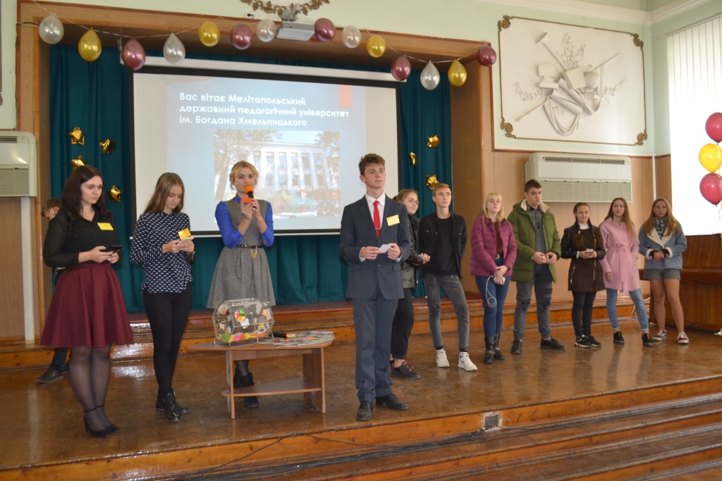 Двері Мелітопольського державного педагогічного університету імені Богдана Хмельницького сьогодні відкрилися для 183 учнів Мелітопольських шкіл і ліцеїв, а саме №5, 7, 9, 10, 11, 15, 19, 22, 25.