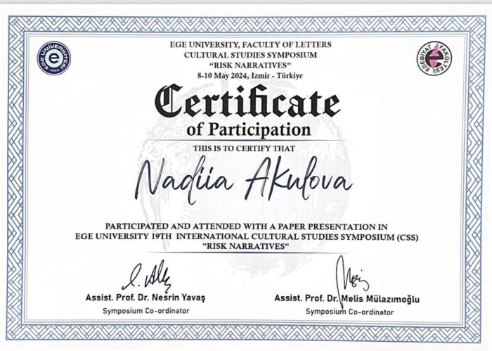 Протягом 8-10 травня в місті Ізмір (Туреччина) відбувся 19-й Міжнародний симпозіум з культурології (CSS 2024). Його організаторами стали факультет літератури та кафедра американської культури і літератури Егейського університету (Ege Üniversitesi).
