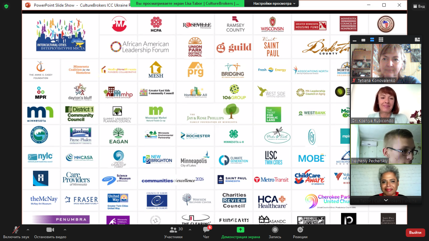 Це був масштабний вебінар, оскільки зібрав близько 40 учасників з усіх куточків України, адже вони представляли шість Інтеркультурних Міст України – Луцьк, Мелітополь, Одесу, Павлоград, Вінницю і Суми.