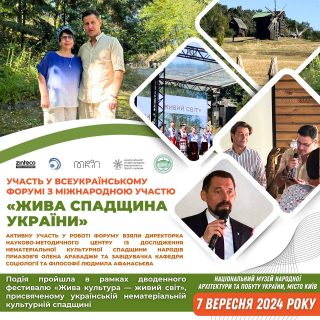 🏛️🇺🇦7 вересня 2024 року у національному музеї народної архітектури та побуту України (м. Київ) відбувся Всеукраїнський форум з міжнародною участю «Жива спадщина України». Подія пройшла в рамках дводенного фестивалю «Жива культура — живий світ», присвяченому українській нематеріальній культурній спадщині.