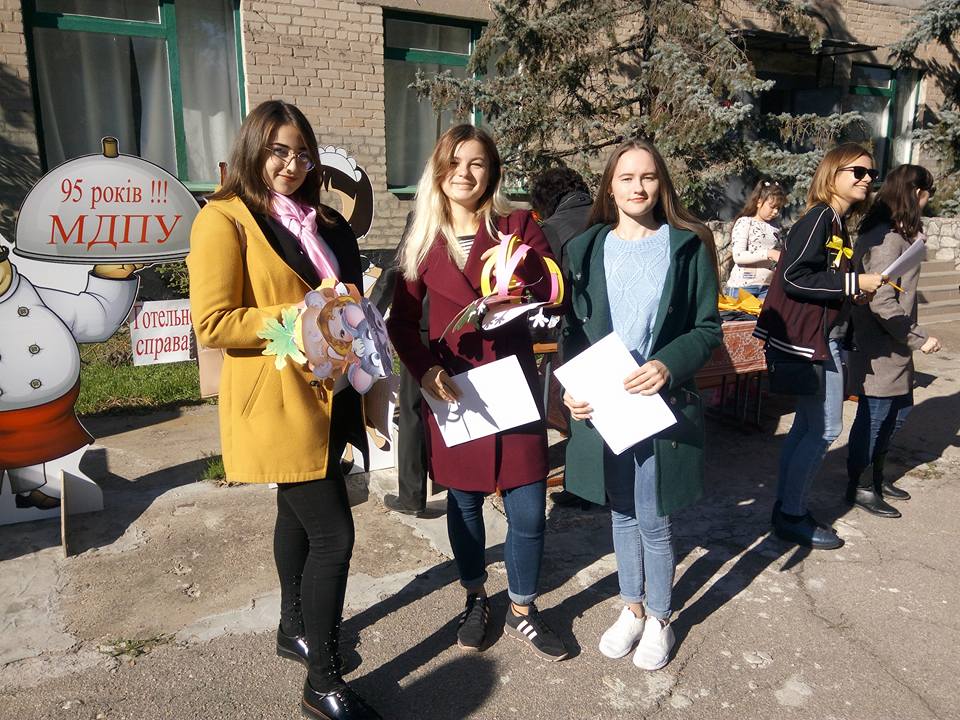 6 жовтня 2018 р. доцент кафедри української і зарубіжної літератури Землянська А.В. та студенти 215-ф групи філологічного факультету Кузьменко Вікторія, Черненко Анастасія та Лохматова Світлана взяли участь у станції філологічного факультету на загальноміському форумі “Феєрія Всезнайки”, влаштованому МДПУ імені Богдана Хмельницього. Захід дозволив юним відвідувачам спробувати себе в різних професіях та дізнатись багато цікавого. Тож студенти-філологи запрошували наймолодших учасників форуму до країни казок.