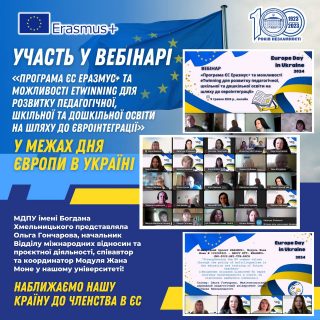 Так, одним із спікерів вебінару виступила Ольга Гончарова, начальник Відділу міжнародних відносин та проєктної діяльності МДПУ імені Богдана Хмельницького, співавтор та координатор Модуля Жана Моне “Strengthening the EU common values through the policy of multilingualism in the education and training of future teachers” («Зміцнення спільних цінностей ЄС через політику багатомовності в освіті та підготовці майбутніх учителів») у нашому університеті.