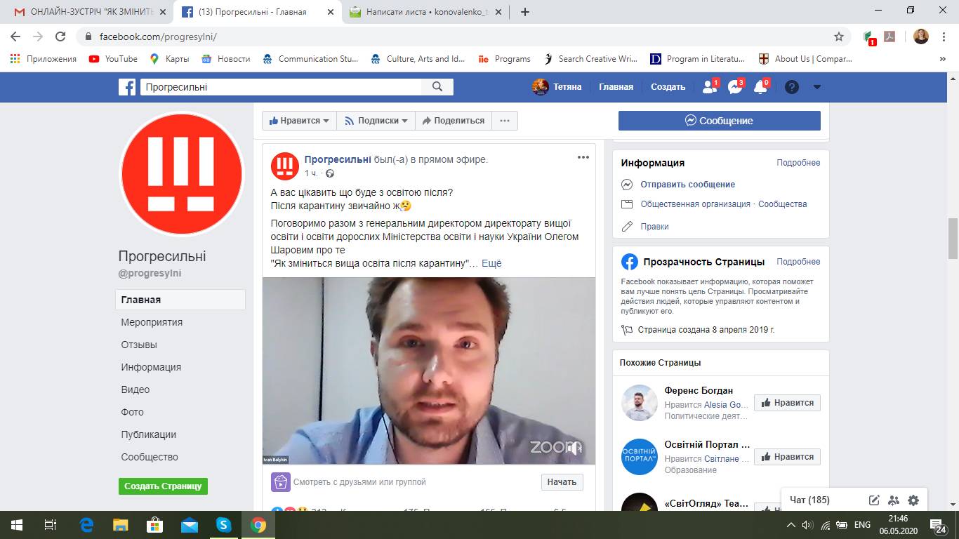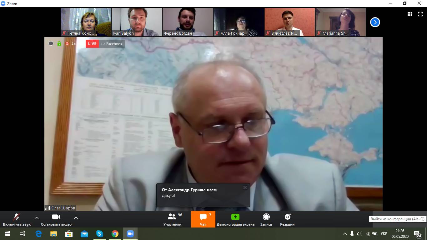 6 травня вісім викладачів нашого університету взяли участь у Zoom-зустрічі «Як зміниться вища освіта після карантину?» з генеральним директором директорату вищої освіти і освіти дорослих Міністерства освіти і науки України Олегом Шаровим.