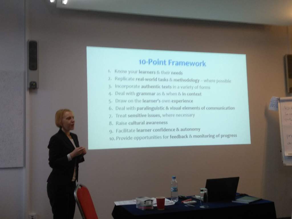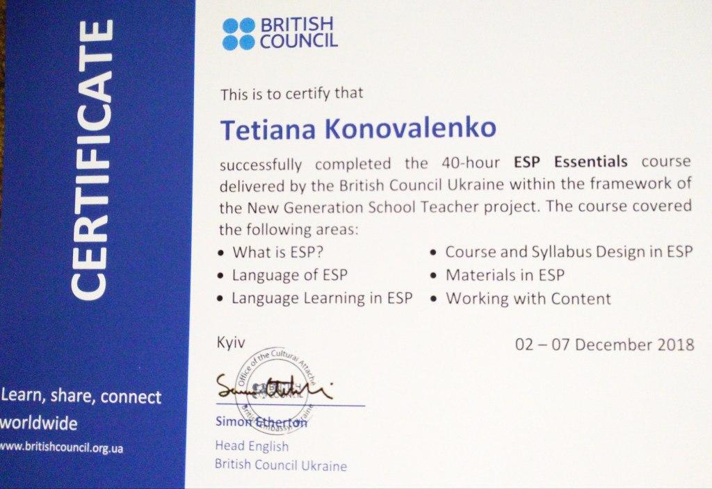 Викладачам нашого університету доцентам Коноваленко Т.В. і Гончаровій О.А. пощастило взяти участь у 40-годинному тренінгу “ESP Essentials” Британської Ради, який проводила тренер з Великої Британії Рос Райт. Рос має багатий досвід викладання англійської мови у Великій Британії, Франції і Японії та досвід роботи тренером для вчителів і викладачів англійської мови.