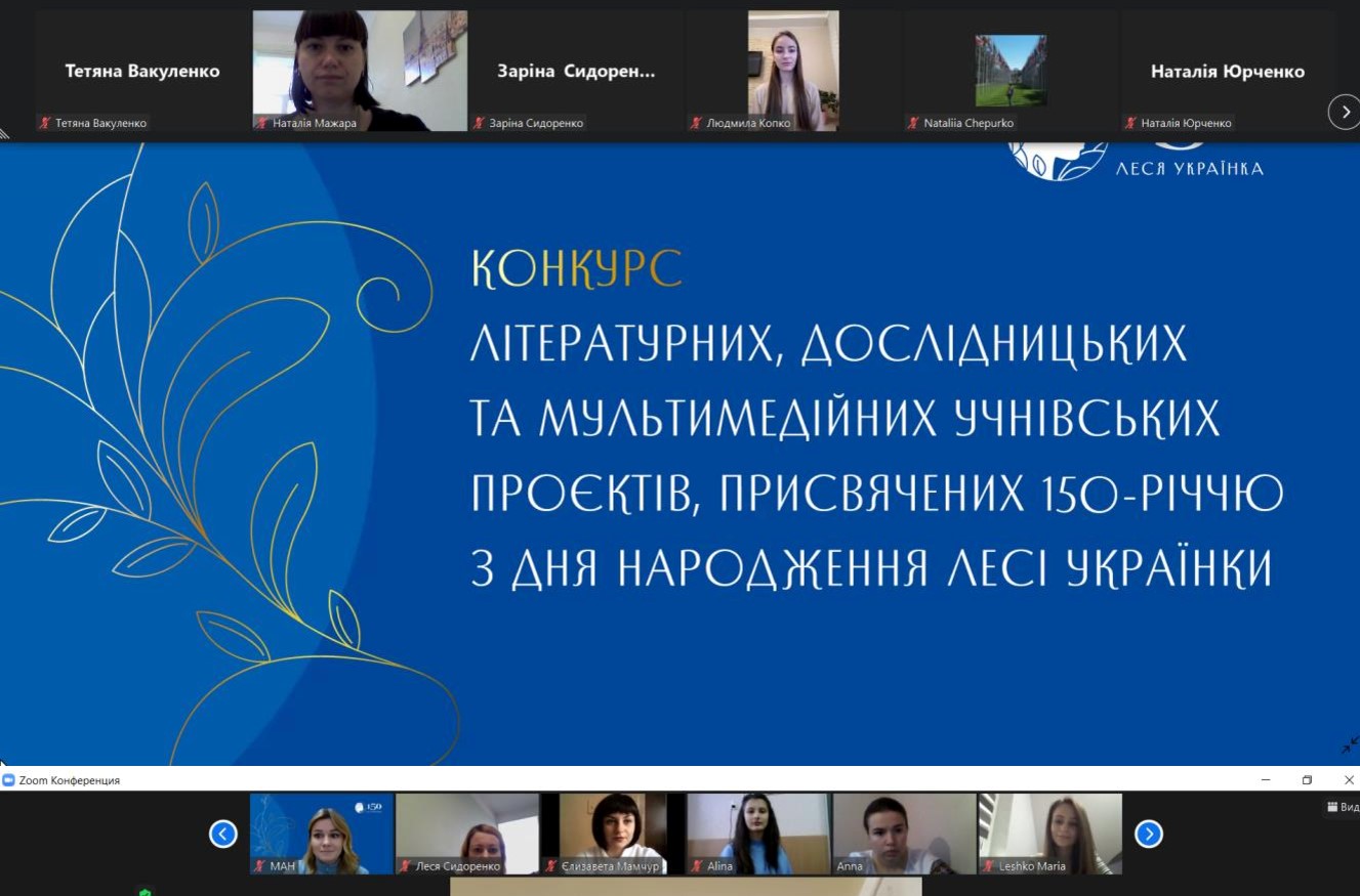 30 листопада в дистанційному режимі на онлайн-платформі «Zoom» відбулося оголошення результатів Конкурсу літературних, дослідницьких та мультимедійних проєктів, присвячених 150-річчю з дня народження Лесі Українки.