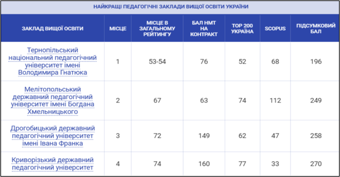 У 2023 р.− Університет увійшов у ТОП-10 кращих педагогічних вишів і посів 8 місце Найкращі педагогічні заклади освіти України – Освіта.UA (osvita.ua).