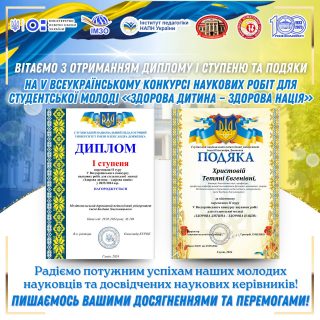 🇺🇦Щиро вітаємо та пишаємось цією визначною перемогою! Вона є свідченням високих наукових досягнень та таланту. Бажаємо подальших успіхів у навчанні та науковій діяльності!