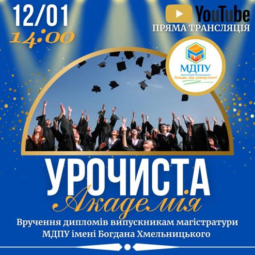 Мелітопольський державний педагогічний університет імені Богдана Хмельницького запрошує велику освітянську родину долучитися до важливої події в літописі Альма-матер – УРОЧИСТОЇ АКАДЕМІЇ ВРУЧЕННЯ ДИПЛОМІВ ВИПУСКНИКАМ МАГІСТРАТУРИ 2022 РОКУ”.