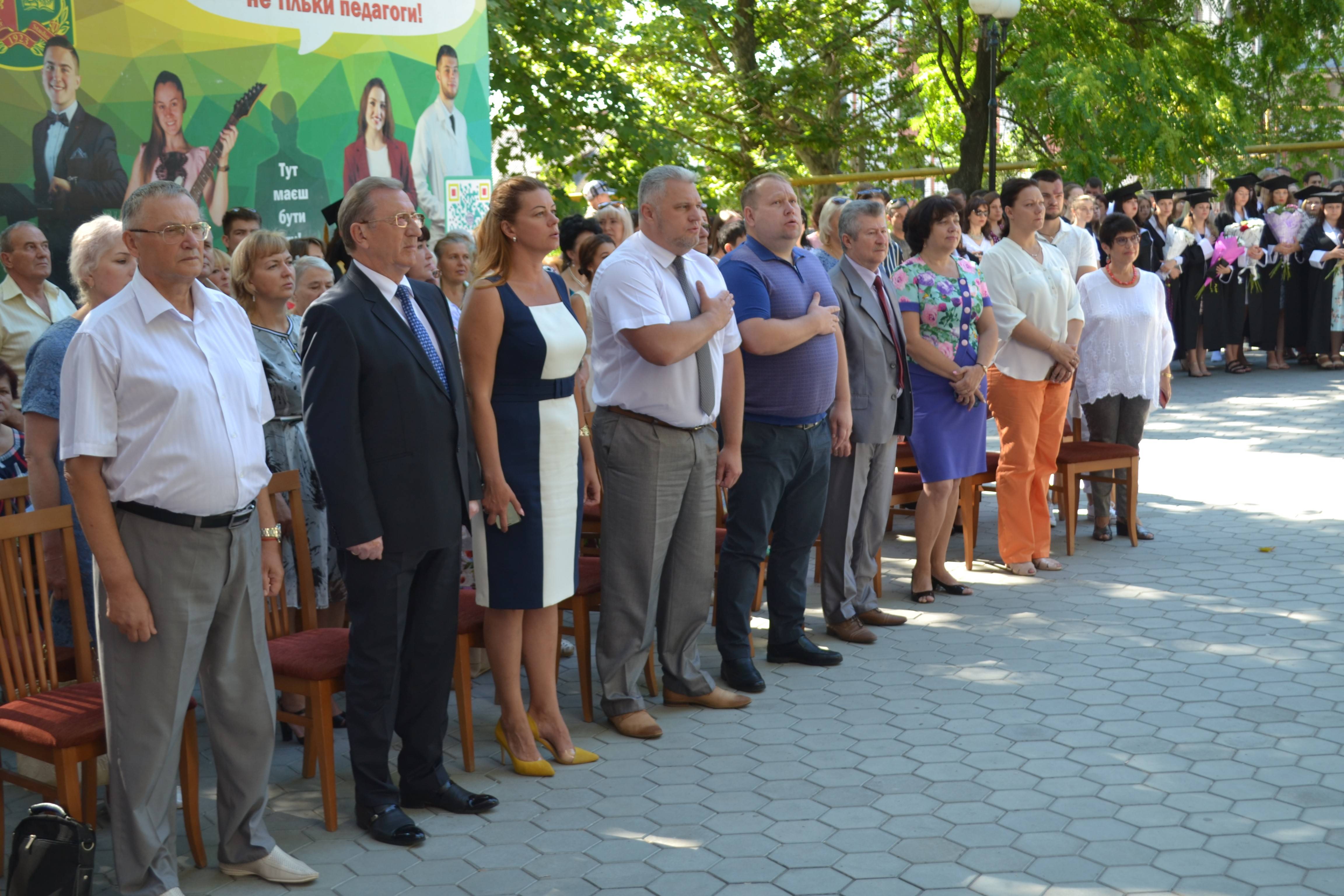 На урочистих зборах з вітальною промовою до випускників звернувся ректор університету, професор А.М. Солоненко, який тепло і сердечно привітав випускників із закінченням навчання в університеті. «У цей радісний день сердечно вітаю Вас з успішним закінченням рідного для нас університету. Хай доля щедро дарує Вам плідну працю, творче натхнення й невичерпну енергію для здійснення задуманого й омріяного. Хай впевненість у собі стане запорукою Вашого успіху. Щирі слова привітання пролунали і від гостей свята.