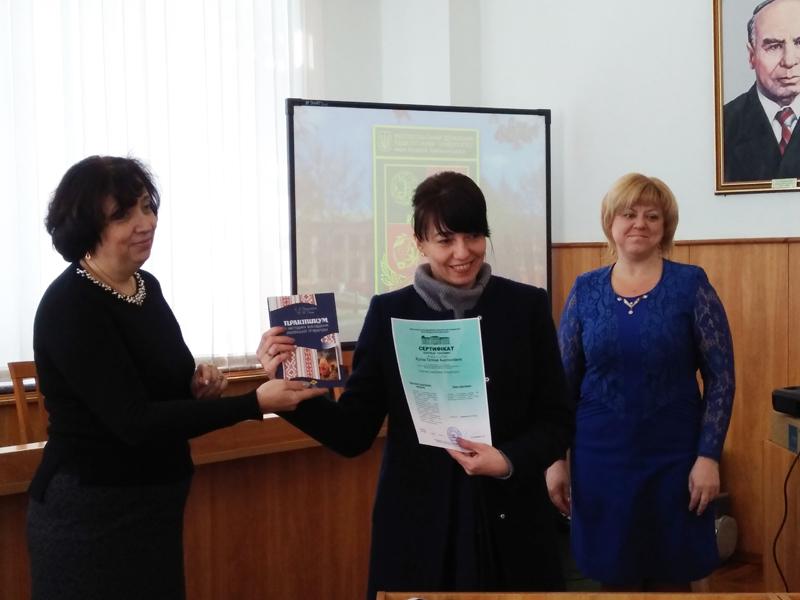 Сьогодні відбулося урочисте вручення сертифікатів за двома освітніми сертифікаційними програмами: «Українська література: сучасні тренди в освітньому просторі», «Світова (зарубіжна) література». Сертифікати та подарунки було вручено першим проректором МДПУ імені Богдана Хмельницького І.А. Мальцевою.