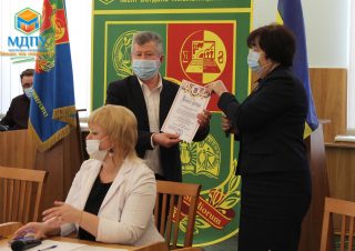Голова Первинної профспілкової організації Тетяна Дюжикова вручила ректору Почесний знак «За розвиток соціального партнерства» за сприяння розвитку соціального партнерства та за сприяння розвитку профспілкового руху, соціального діалогу, партнерства.