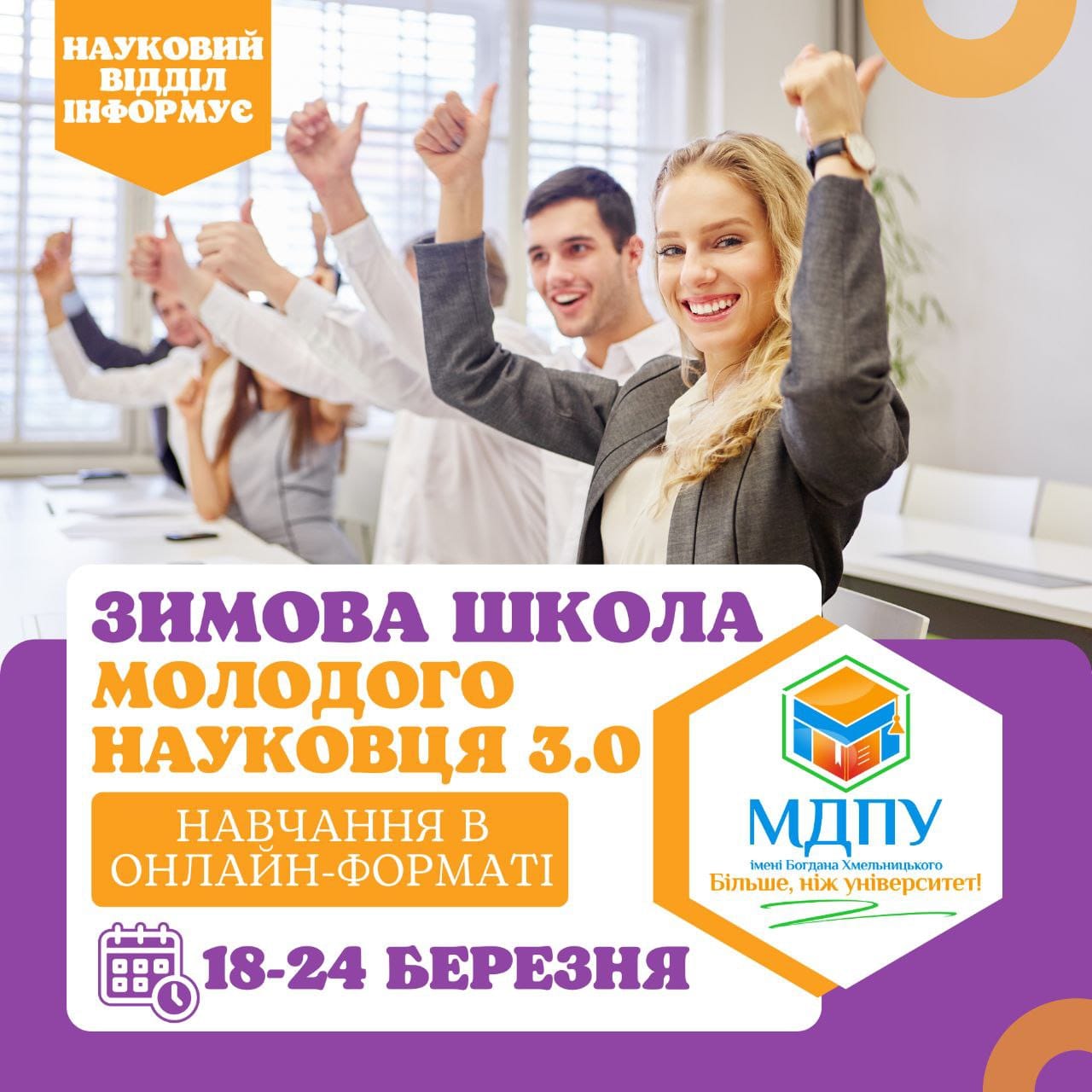 З 18 по 24 березня 2023 року в онлайн-форматі відбудеться навчання у «Зимовій школі молодого науковця 3.0».