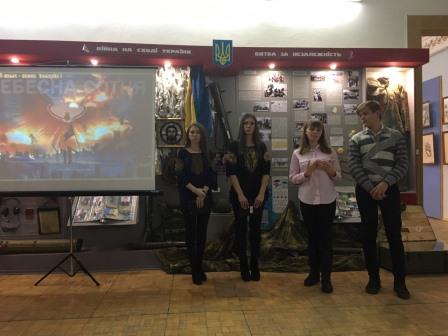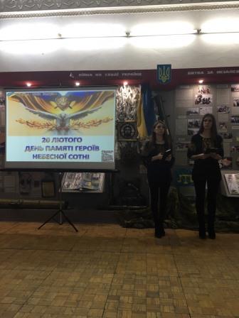 Це був надзвичайно важкий іспит для України. Українці об’єдналися, щоб боротися за краще життя своїх дітей, друзів. батьків. Але ми вистояли і продемонстрували усьому світові свою європейськість та неймовірне прагнення до свободи. Того дня загинула найбільша кількість людей. Іх назвали «Небесною сотнею». Присутні переглянути відео-фрагменти «Хроніка подій «Революція Гідності»», «Про розстріл майдану 20.02.2014 року».