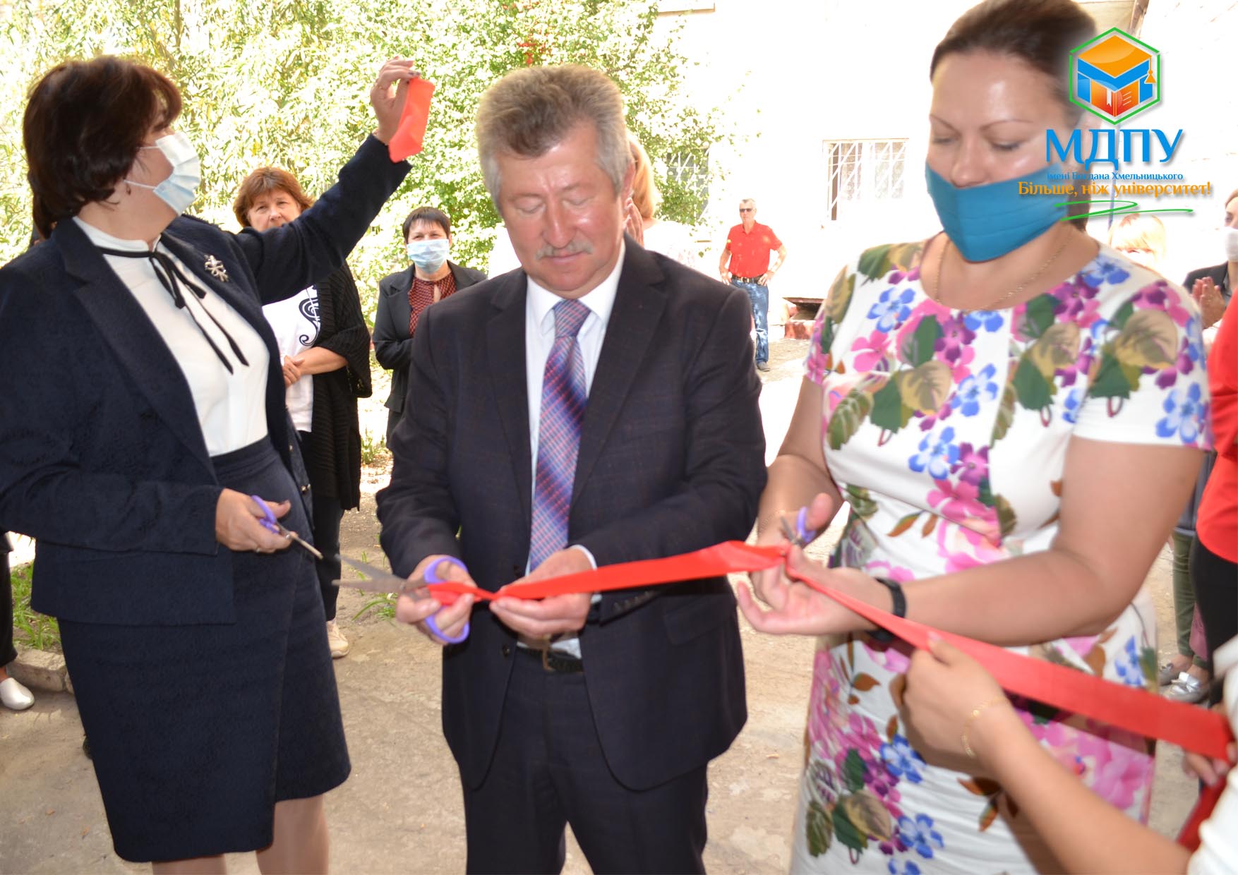 Виконання почесної місії – урочистого перерізання стрічки і відкриття нового приміщення Центру здійснили ректор університету Анатолій Солоненко, перший проректор Ірина Мальцева і проректор з наукової роботи Людмила Москальова.