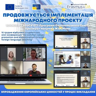 🎓💫10 грудня 2024 року відбулася студентська міні-конференція “EU common values promotion and dissemination through foreign language teaching“ за результатами реалізації практичної частини МодуляЖана Моне.