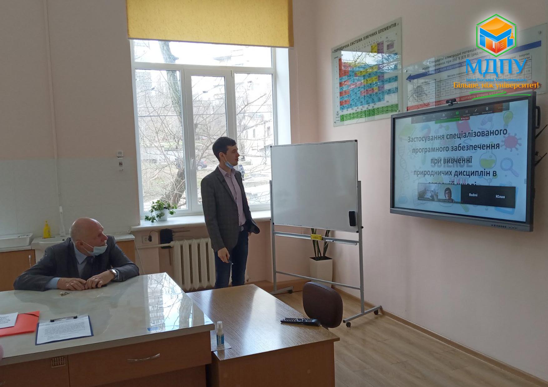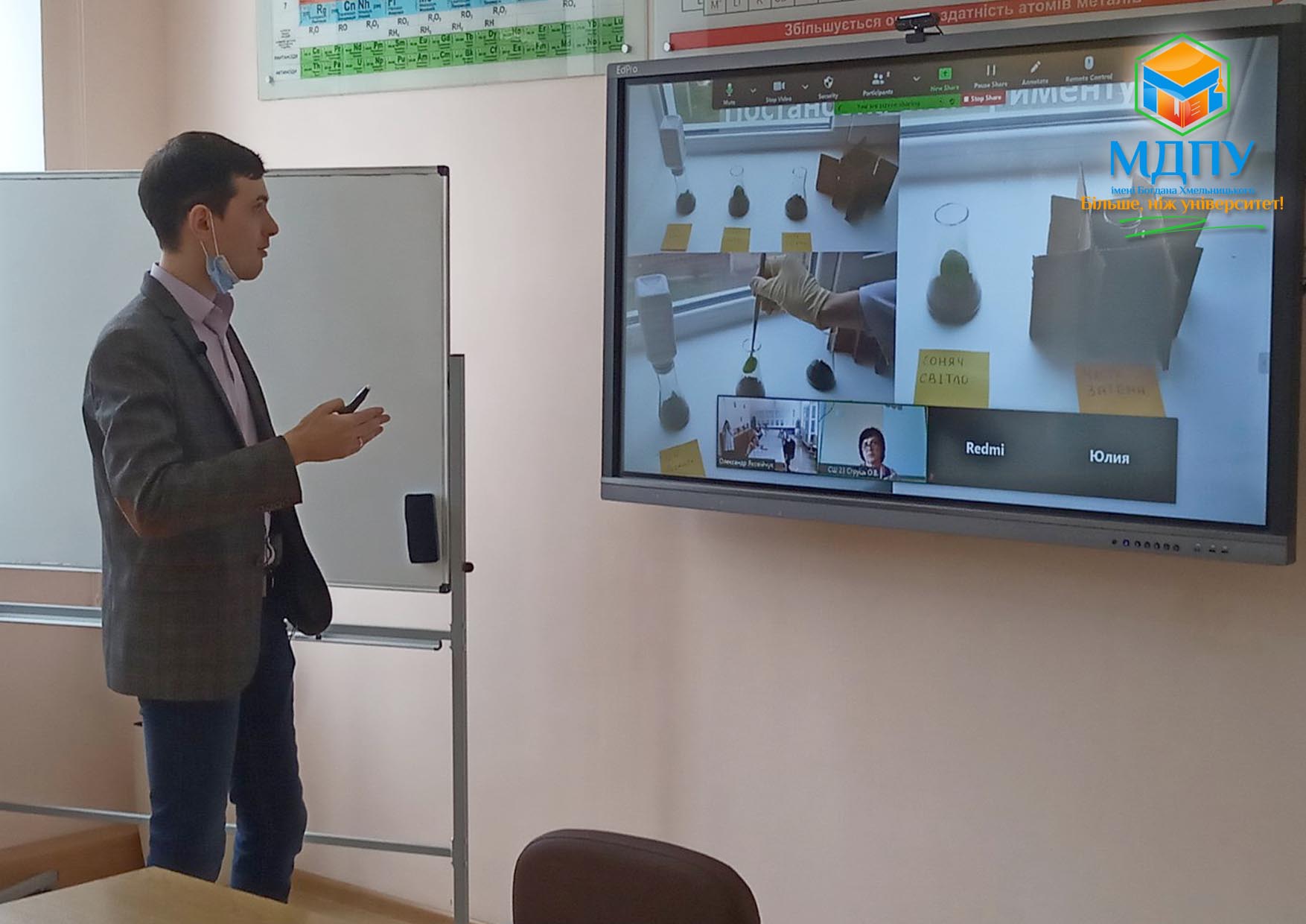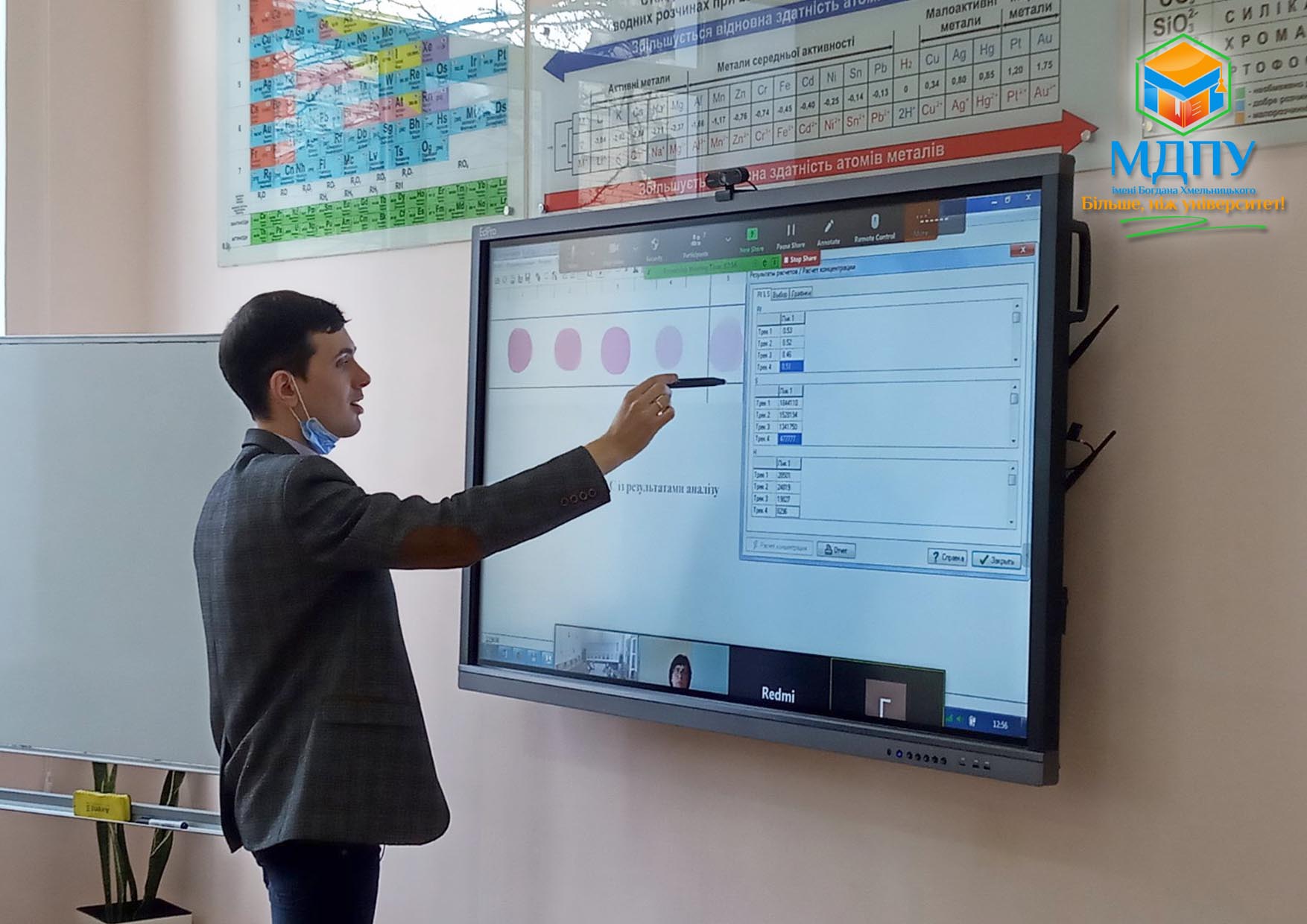 Також із доповіддю виступив викладач кафедри неорганічної хімії та хімічної освіти Олександр Яковійчук, тема доповіді – «Застосування спеціалізованого програмного забезпечення при вивченні природничих дисциплін в середній школі». В своїй доповіді він розповів як за допомогою програмних застосунків виразити концентрацію досліджуваних речовин, без використання спеціалізованих пристроїв.