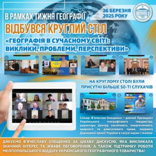 👥💫 На круглому столі були присутні більше 50-ті слухачів: студенти та науково-педагогічні працівники МДПУ імені Богдана Хмельницького, вчителі ЗЗСО з різних регіонів країни, члени Мелітопольського відділу Українського географічного товариства.
