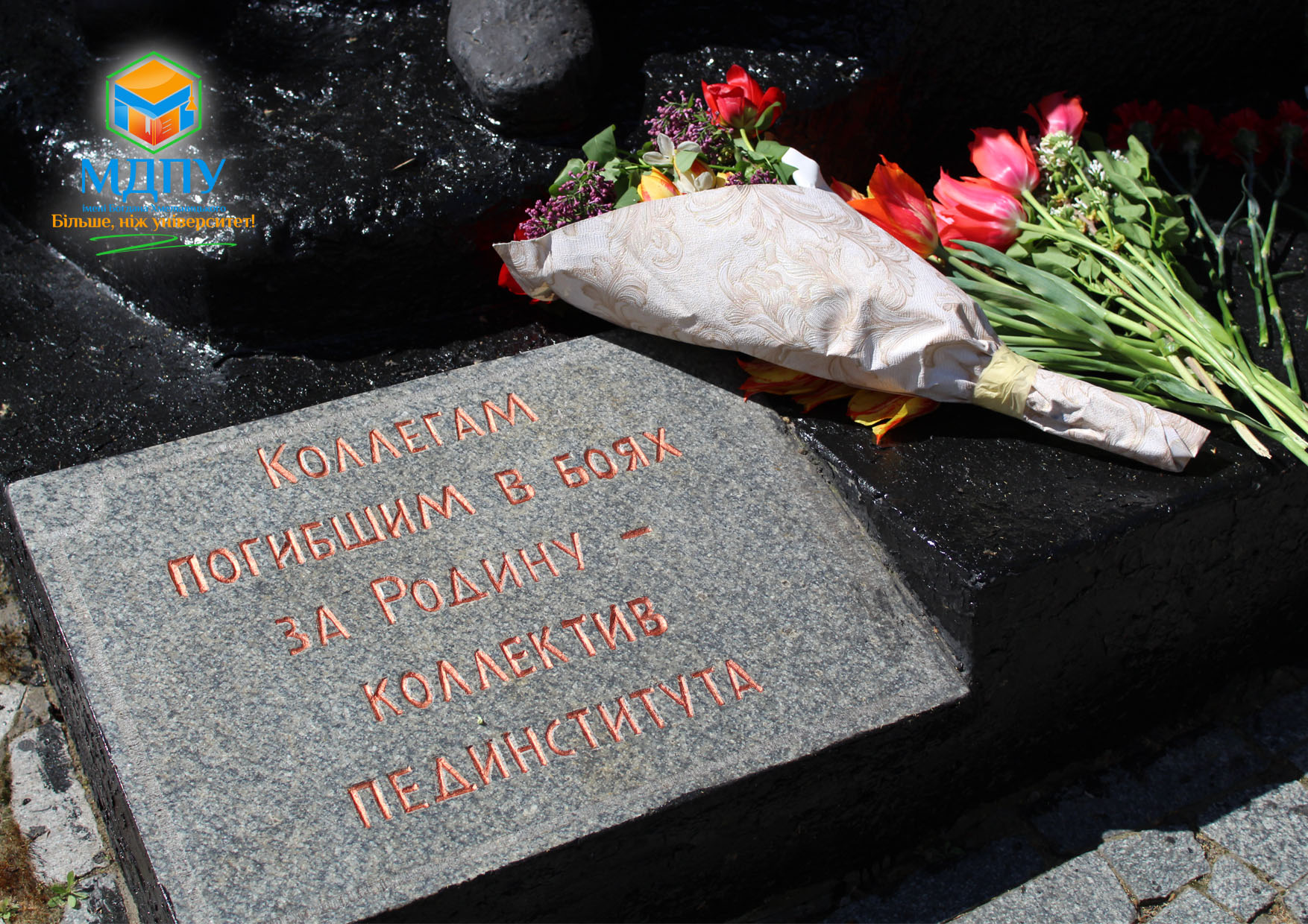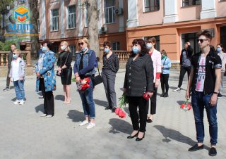 Біля пам’ятної стели загиблих у роки Другої світової війни співробітників і студентів зібралися представники ректорату, викладачі і студенти університету.