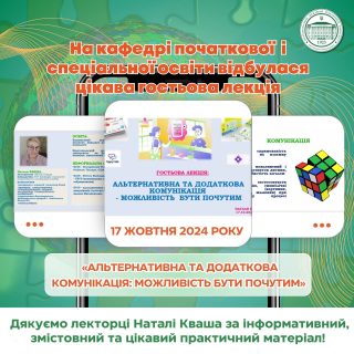 17 жовтня 2024 року відбулася гостьова лекція на тему: «Альтернативна та додаткова комунікація: можливість бути почутим»