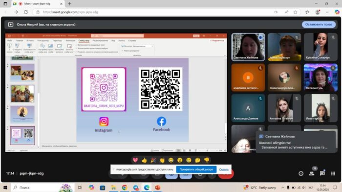 👩🏻🎓📊Завідувач кафедри дошкільної освіти та соціальної роботи, кандидат педагогічних наук, доцент Жейнова Світлана Сергіївна детально ознайомила присутніх з особливостями вступної кампанії 2025 року, умовами подачі документів, правилами прийому та можливостями для вступу на бюджетну та контрактну форми навчання. Вона наголосила на важливості своєчасної підготовки до вступу та звернула увагу на переваги навчання саме на факультеті соціально-педагогічної та мистецької освіти.