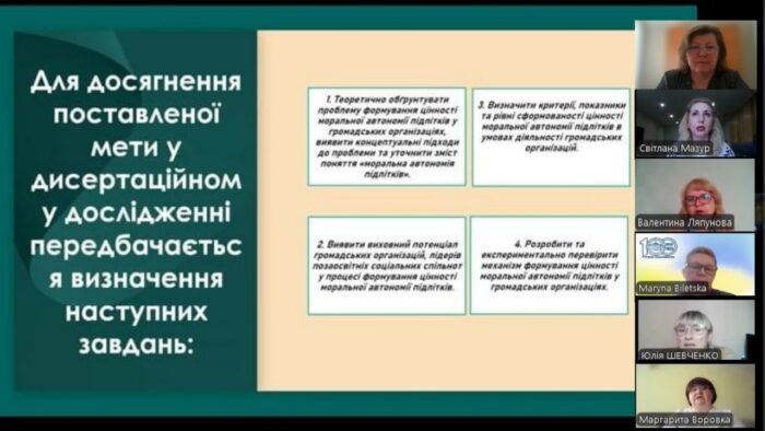 👩🏼🎓✅ У доповіді дисертантки було висвітлено питання актуальності, наукової новизни, практичного значення дослідження, а також достовірності отриманих результатів. На основі представленого матеріалу учасники засідання поставили запитання та долучилися до обговорення результатів дисертаційного дослідження.