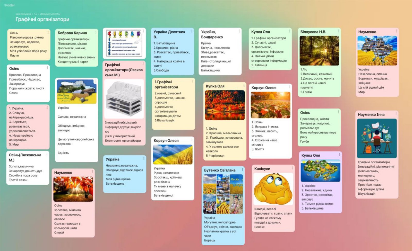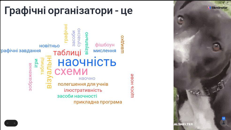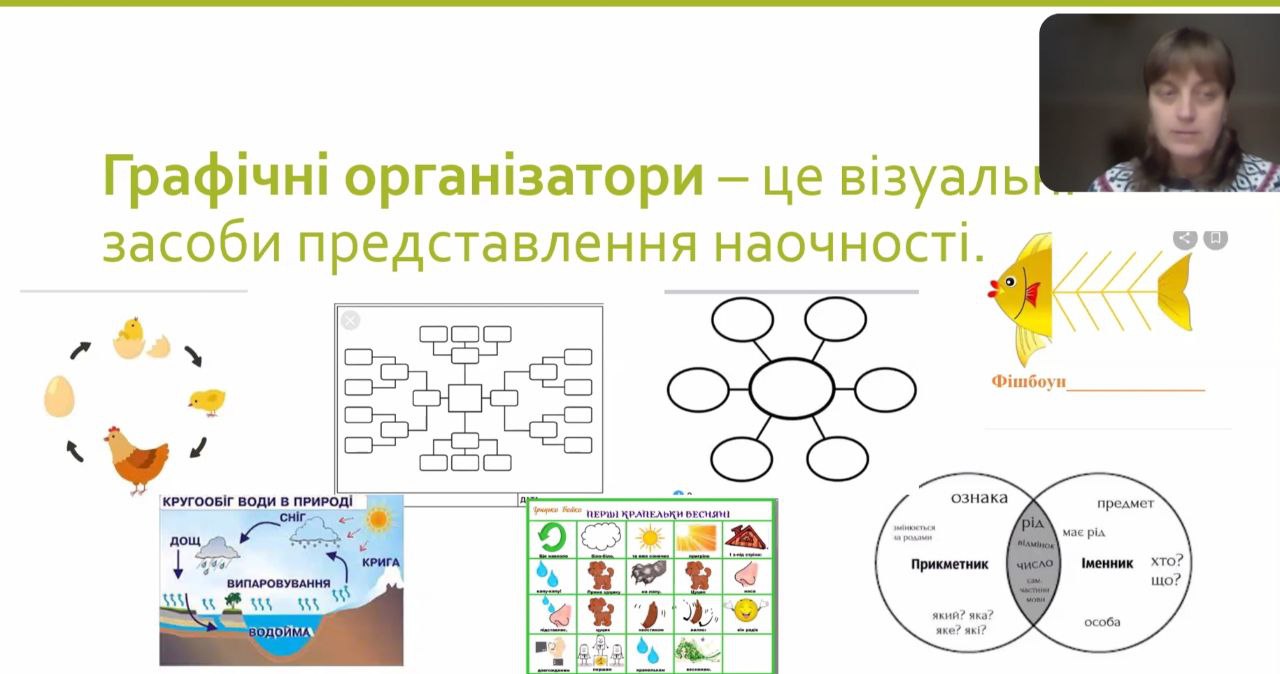 Наразі обрана тема для бінарної лекціє є дуже актуальною, бо графічні організатори (деякі з них також називаються концептуальним картами, схемами, та картами пам’яті) є спосіб представлення знань та організації інформації за допомогою зображень. Вони допомагають вчителю, студенту або учню конвертувати та стиснути багато роз’єднаної інформації в структурований та простий для читання графічний дисплей. Як результат, візуальний дисплей передає складну інформацію у простий для розуміння спосіб.
