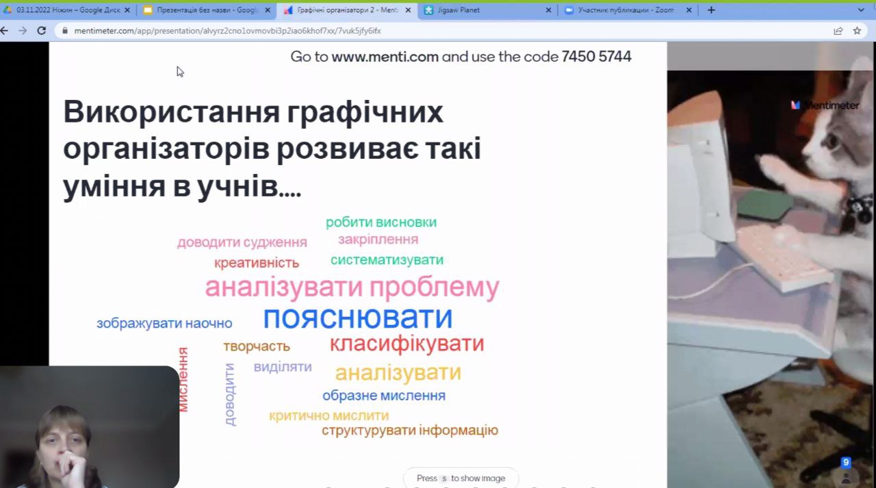 У ході лекції студенти з’ясували, яким чином учителю початкових класів потрібно враховувати положення теорії поколінь і характеристики психотипів дітей під час організації освітнього процесу. Також відповідно до цих основ розібрали всі можливі графічні організатори (візуальні засоби представлення наочності), які може застосовувати вчитель початкових класів для ефективної роботи з молодшими школярами. Дуже цінним елементом заняття стало й практичне створення різних графічних організаторів як на папері, так і за допомогою різних онлайн-інструментів. Студенти із задоволенням працювали з онлайн-дошками, опитувальниками, ігровими онлайн-інструментами. У дружній, невимушеній атмосфері здобувачі освіти розібралися з теоретичними питаннями і мали змогу практично попрактикуватися під час заняття на онлайн-сервісах.