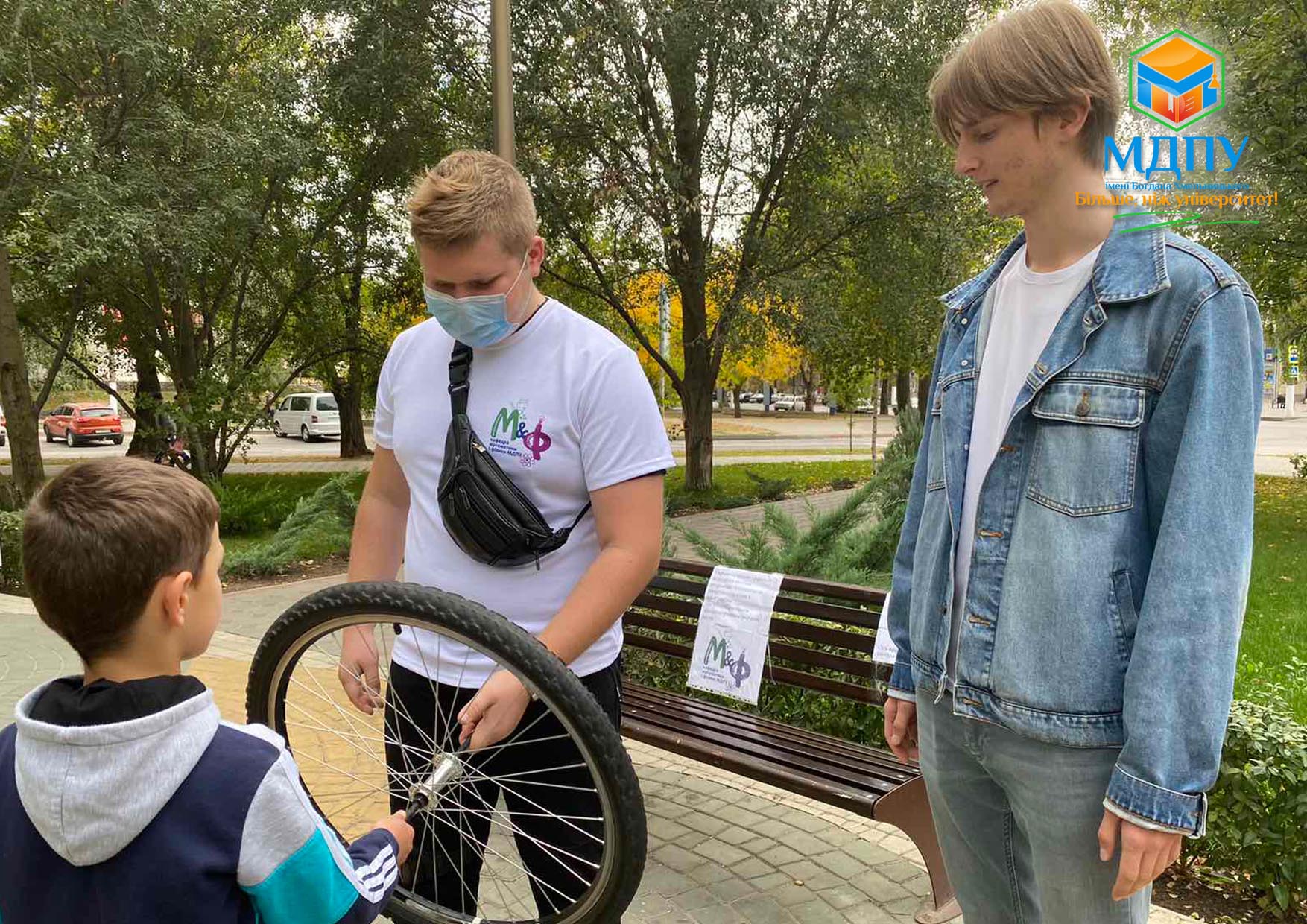 А ними були управління молоді та спорту Мелітопольської міської ради, Центра розвитку дитини «Почемучка», Мелітопольського осередку ГО «Батьки за вакцинацію», ГО «СпільноHUB», ініціативно група MeloVeloCity та локальний бізнес. В рамках цієї події проходили змагання з велосипедного спорту серед 60 учасників віком від 2 до 7 років на трьох різнопланових трасах, де в склад суддівських бригад входили наші студенти. А також проходила демонстрація фізичного експерименту – гіроскопічний ефект зі справжнім велосипедним колесом. Тут діти та дорослі отримували відповіді на питання: чому двоколісний велосипед не падає та чому потрібно скидати швидкість перед поворотом. Студенти отримали досвід роботи в команді та на подіях міського масштабу.