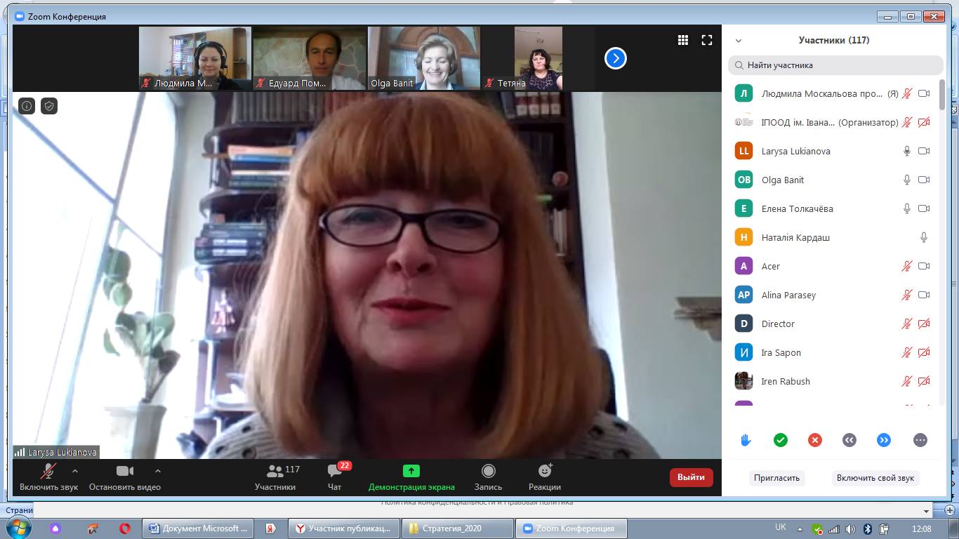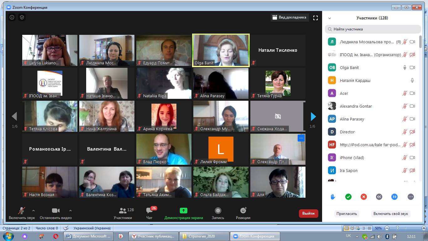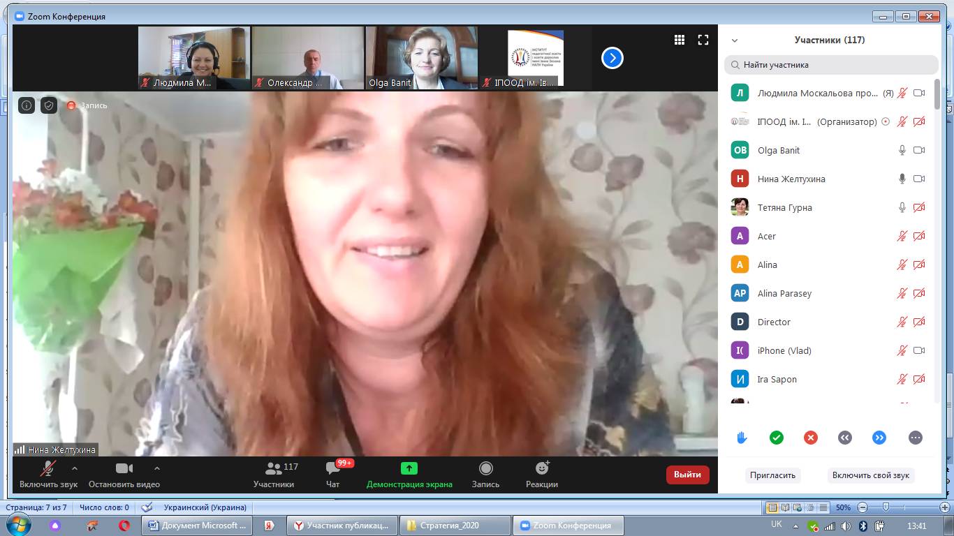 На початку вебінару з вітальним словом звернулася до учасників Лариса Борисівна Лук’янова – доктор педагогічних наук, професор, член-кореспондент НАПН України, директор Інституту педагогічної освіти і освіти дорослих імені Івана Зязюна НАПН України.