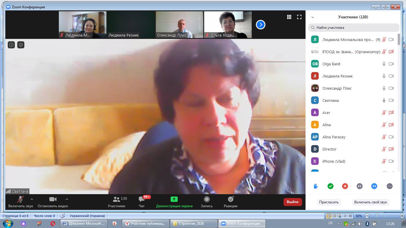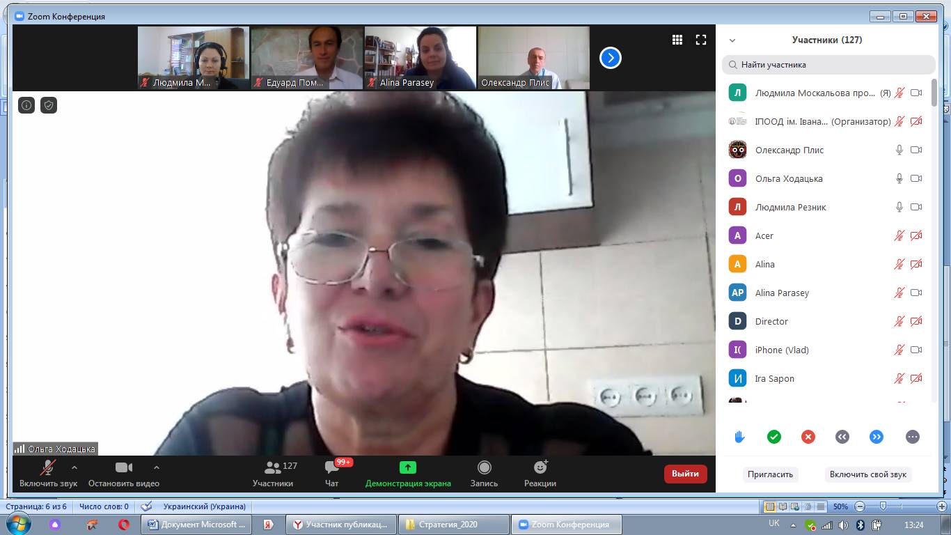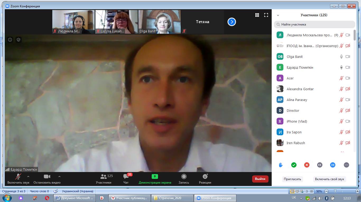 На початку вебінару з вітальним словом звернулася до учасників Лариса Борисівна Лук’янова – доктор педагогічних наук, професор, член-кореспондент НАПН України, директор Інституту педагогічної освіти і освіти дорослих імені Івана Зязюна НАПН України.