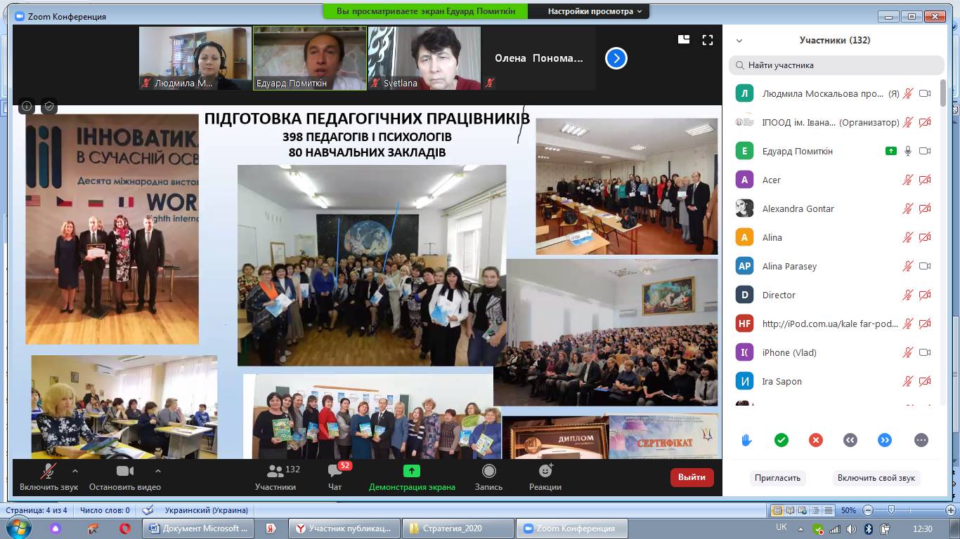 Ми дуже дякуємо всім учасникам за активну участь, за запитання, коментарі, побажання, і висловлені враження. Від імені учасників висловлюємо велику вдячність Ларисі Борисівні Лук’яновій – директору Інституту – за підтримку і сприяння у проведенні вебінару, авторам курсу – Людмилі Юріївні Москальовій і Едуарду Олександровичу Помиткіну, а також Кірілу Васильовичу Котуну за технічну підтримку і допомогу з підготовкою сертифікатів.