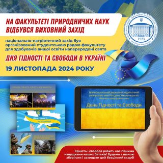 🏛️🙋🏻♂️19 листопада 2014 року напередодні свята, студентська рада факультету природничих наук організувала та провела виховний захід з національно-патріотичного виховання до Дня Гідності та Свободи в Україні для здобувачів вищої освіти факультету.