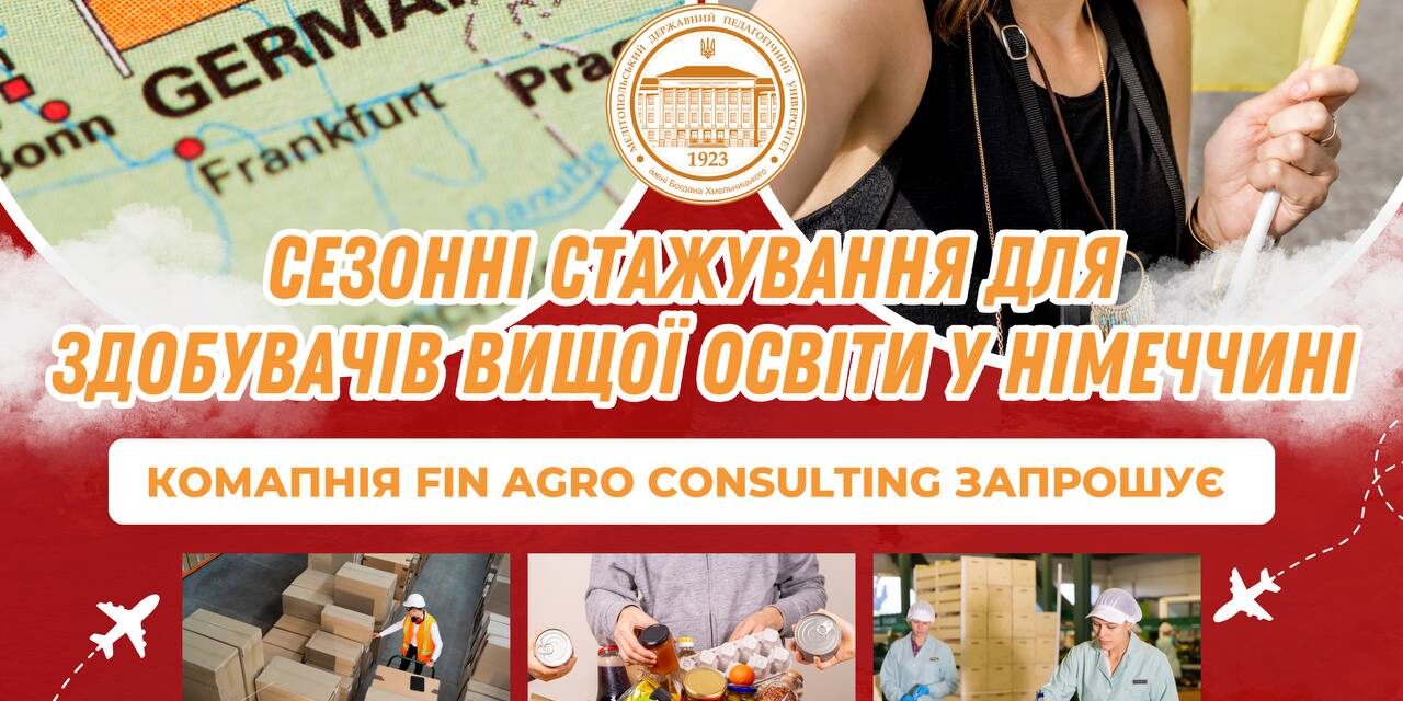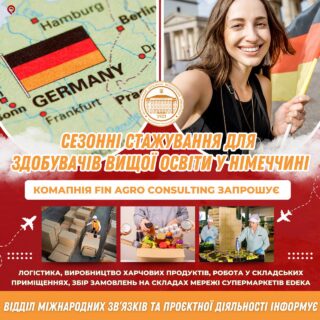 🇩🇪✈️ Комапнія Fin Agro Consulting пропонує сезонні стажування для здобувачів вищої освіти у Німеччині.
