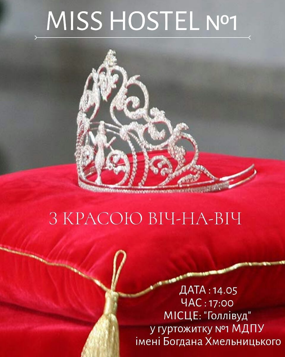 П’ять студенток, п’ять красунь, які зіб’ють тебе з ніг, навіть якщо ти будеш сидіти, своїм талантом і чарівністю. Тому, приходь у «Голлівуд”, гуртожиток №1 МДПУ імені Богдана Хмельницького, 14.05 о 17:00 і ти зможеш опинитися віч-на-віч із красою та підтримати свій факультет. Так що, ти з нами?